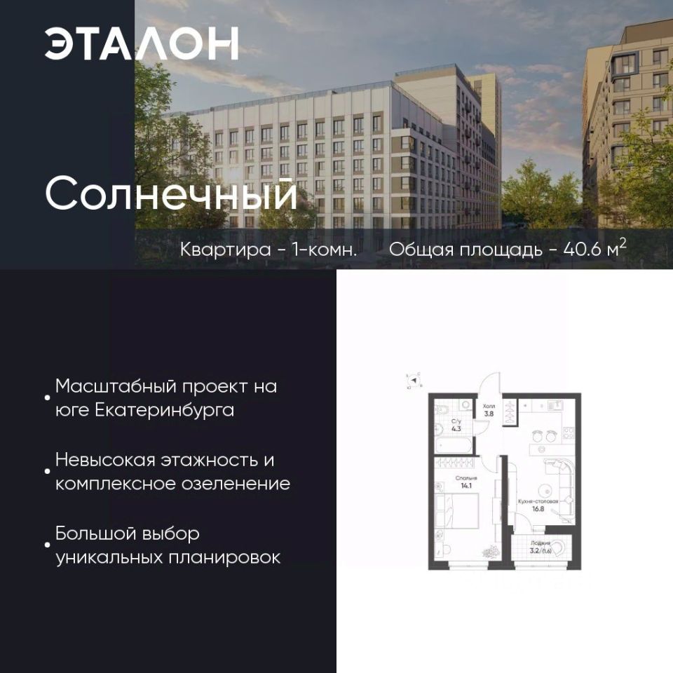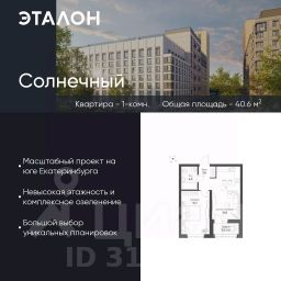 Продается квартира 561, по адресу ЖК "Солнечный", корпус Солнечный, блок 6.3 в Солнечный на 8 этаже, с площадью 40.6 м2.