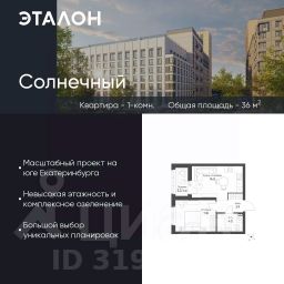 Продается квартира 252, по адресу ЖК "Солнечный", корпус Солнечный, блок 6.3 в Солнечный на 11 этаже, с площадью 36 м2.