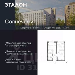 Продается квартира 302, по адресу ЖК "Солнечный", корпус Солнечный, блок 6.3 в Солнечный на 5 этаже, с площадью 41.1 м2.