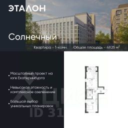 Продается квартира 2, по адресу ЖК "Солнечный", корпус Солнечный, корпус 5.3 в Солнечный на 2 этаже, с площадью 49.25 м2.