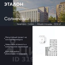 Продается квартира 314, по адресу ЖК "Солнечный", корпус Солнечный, корпус 5.3 в Солнечный на 7 этаже, с площадью 53.54 м2.