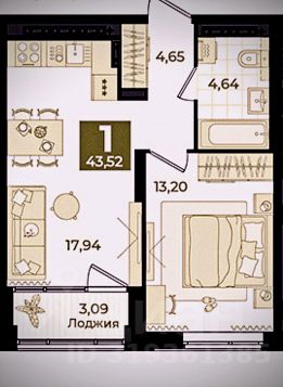 Также, квартира, будет удобна для проживания пары, но и семья с детьми, также сможет с комфортом организовать свою жизнь. Это возможно из-за планировки квартиры: помимо спальни, просторная кухня-гостинная позволяет разместить в ней спальное место, без ущерба функциональности остальной площади помещения. Теплая лоджия, также увеличивает жилую площадь и позволяет разместить в ней кабинет.