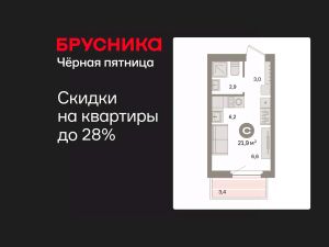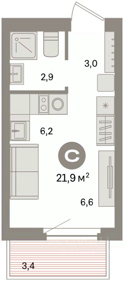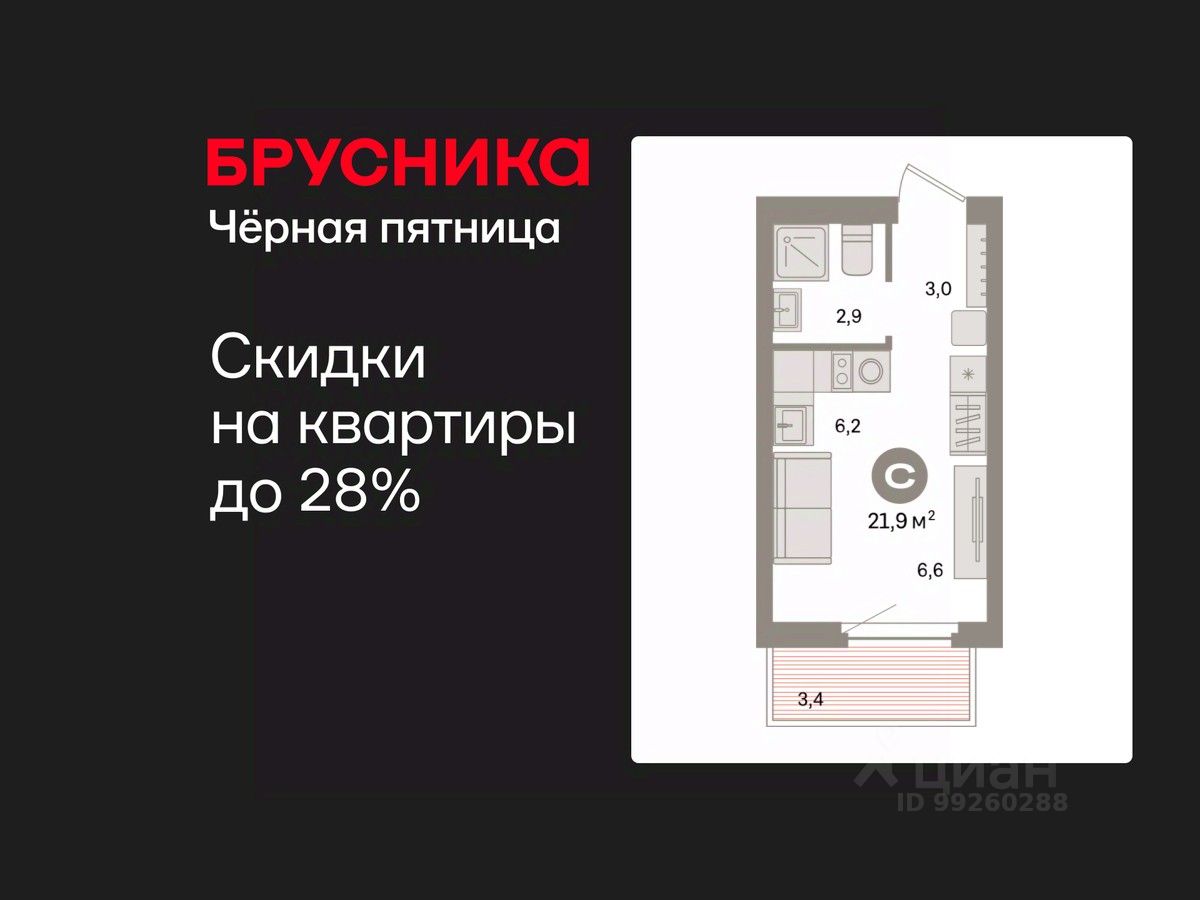 Студия в квартале "Депо". Особенности планировки: предчистовая отделка, балкон.