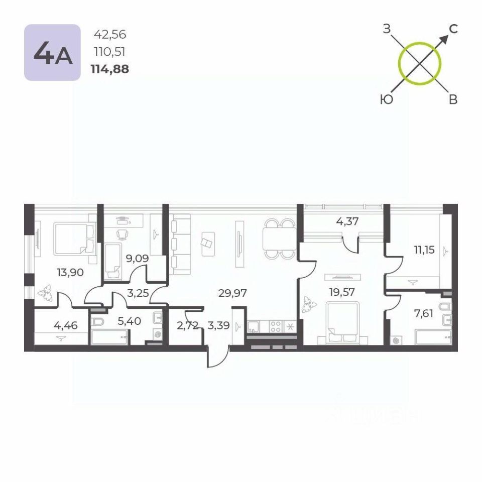 Продаётся 4-комнатная квартира в сданном доме (Академика Ландау, 34 (Блок 12.9)), срок сдачи: III-кв. 2025, общей площадью 114.88 кв.м., на 4 этаже. Новый жилой комплекс "по ул. Академика Ландау" от застройщика "ЭнергоКомплекс" расположен по адресу: г. Екатеринбург, улица Академика Ландау.