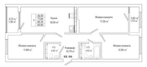 Продаётся 3-комнатная квартира в сданном доме (Яскина, 14/3 (Дом 3 3 этап)), срок сдачи: III-кв. 2025, общей площадью 82.47 кв.м., на 20 этаже. Система "умный" дом