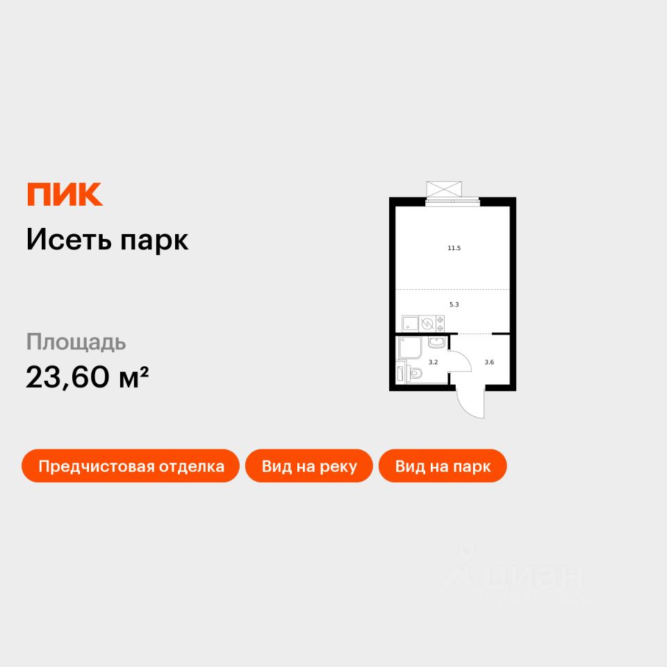 Продаётся квартира-студия площадью 23,6 кв.м на 17 этаже 24 этажного дома (Корпус 4, Секция 1) проекта ПИК Исеть парк. Светлый просторный подъезд на уровне земли, функциональная планировка, большие окна, предчистовая отделка.