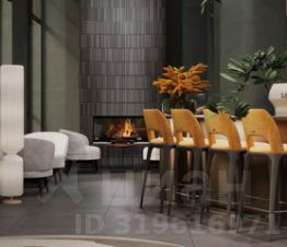 Интерьер вестибюля с кофейней, камином и панорамными видами выполнен в благородных приглушенных тонах с авторским панно из мозаики.