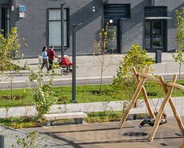 Проект включает шесть домов и многоуровневый паркинг. На первых этажах открываются кафе, магазины и полезные сервисы. А в уютных дворах-парках есть детские и спортивные площадки.