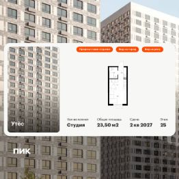 Продаётся квартира-студия площадью 23,5 кв.м на 25 этаже 29 этажного дома (Корпус 6, Секция 1) проекта ПИК Утёс. Светлый просторный подъезд на уровне земли, функциональная планировка, большие окна, предчистовая отделка.