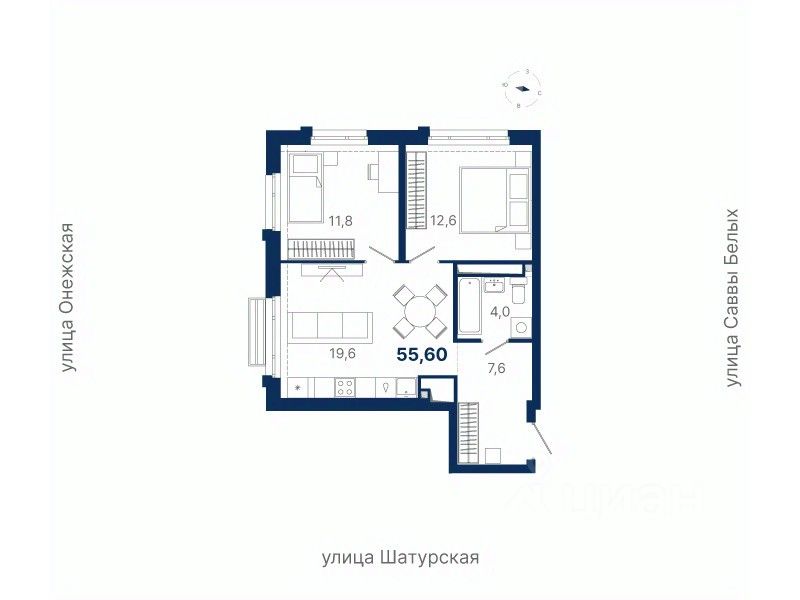Общая площадь55,6 м²
