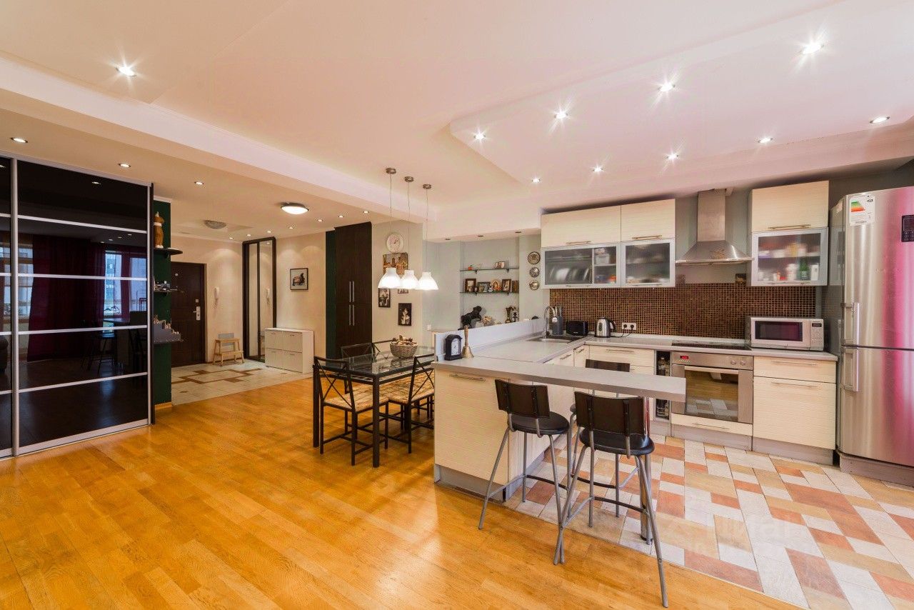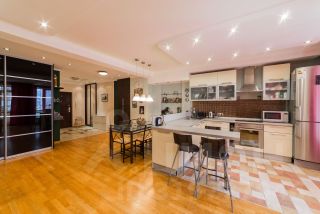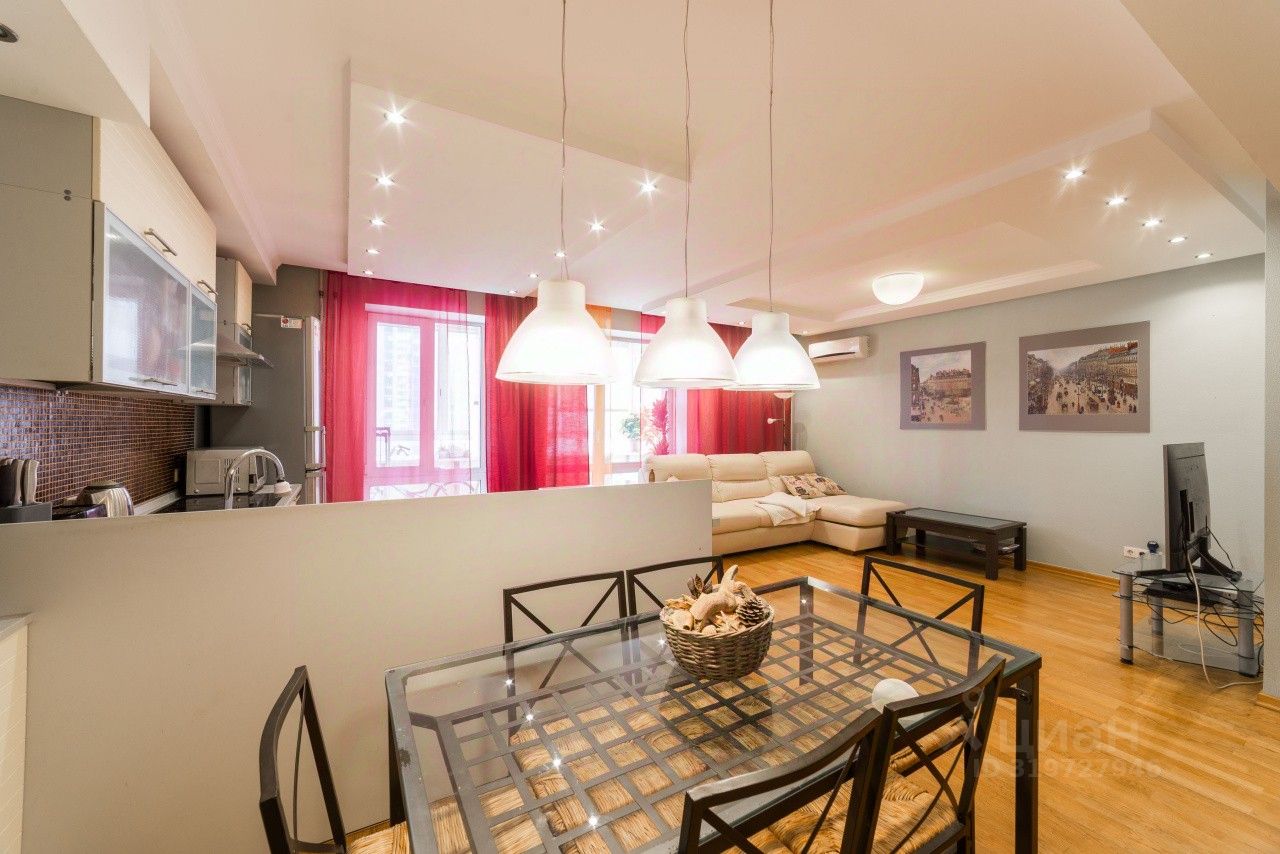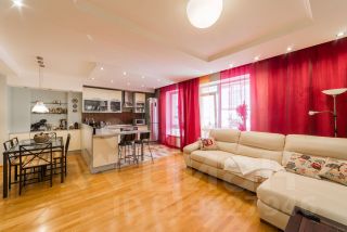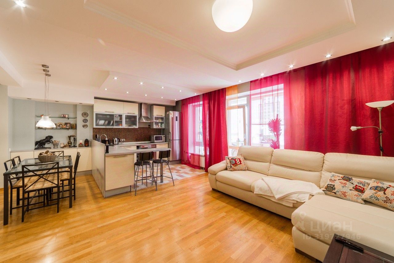 Предлагаем вам уникальную квартиру с большой гостиной площадью 52 кв.м, оборудованной барной стойкой в зоне кухни и выполненной с дубовым штучным паркетом. Огромные окна в пол наполняют пространство светом.