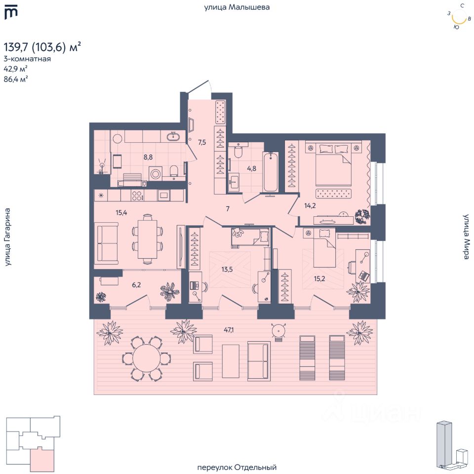 Жилой комплекс бизнес-класса "Отдельный, 5" в тихом центре Екатеринбурга ЖК "Отдельный, 5" — новый жилой комплекс бизнес-класса в Кировском районе Екатеринбурга (Втузгородок), расположенный в тихом квартале между улицами Малышева, Мира и Гагарина. Архитектурный ансамбль состоит из двух секций высотой 29 и 8 этажей, объединенных стилобатом с коммерческими помещениями и семейным кафе. Комплекс создан для комфортной и приватной жизни людей, ценящих простор, безопасность и современный уровень сервиса. Преимущества ЖК "Отдельный, 5" 1. Просторные и комфортные планировки бизнес-класса Минимальная площадь квартир начинается от 58 м². Предусмотрены варианты с просторными кухнями-гостиными, мастер-спальнями, кабинетами и хозкомнатами. Теплая лоджия в каждой квартире. На каждом этаже — места для колясок и велосипедов, а на -1 уровне — 69 кладовых помещений. В комплексе нет студий — только квартиры, созданные для жизни, а не для сдачи в аренду. 2. Двор без машин и с продуманным благоустройством Два уровня дворового пространства: На первом уровне — игровые зоны для детей 312 лет: горки, качели, дорожки для самокатов, скалодром, песочница. На стилобате — теплица-оранжерея, зоны для пикников, места для отдыха и уединения, шезлонги и детская винтовая горка. Двор закрытый и безопасный, с контролем доступа для жителей. 3. Потолки 3 метра — пространство и свет Во всех квартирах предусмотрены потолки 3 метра с запасом под отделку. Это создаёт ощущение свободы, улучшает естественное освещение и циркуляцию воздуха. 4. Комфортный и быстрый доступ к паркингу В доме 5 лифтов, из которых 4 спускаются прямо в подземный паркинг. Каждый лифт рассчитан на груз до 1000 кг — удобно для семей с детьми и покупками. 5. Машиноместо для каждой квартиры В комплексе предусмотрено 171 машиноместо (вмещает до 195 автомобилей) и 10 мотомест на 188 резиденций. Есть возможность подключения зарядных станций для электромобилей (220В). Машиноместа доступны для всех жителей вне зависимости от площади квартиры. 6. Квартиры сдаются с отделкой под чистовую (выполнены все "грязные работы"). Что в нее входит: Оштукатурены стены; Возведены межкомнатные перегородки; Готовы стяжка пола и гидроизоляция пола в санузлах; Установлены радиаторы отопления; Разведены трубы в санузлах. Потолок — бетонная плита перекрытия. Предусмотрена дополнительная звукоизоляция межэтажных перекрытий: используется звукоизолирующий материал Пенотерм НПП ЛЭ (10 мм) с заведением на стену для примыкания стяжки. Поглощает ударный и звуковой шум. Локация и транспортная доступность ЖК "Отдельный, 5" находится во Втузгородке (Кировский район Екатеринбурга). Рядом — улица Малышева и проспект Ленина, но в доме сохраняется тишина даже с открытыми окнами. Удобный выезд в любую часть города. В шаговой доступности — учебные заведения, магазины, скверы, медицинские и спортивные центры. ЖК бизнес-класса "Отдельный, 5" — это: просторные квартиры с потолками 3 метра; машиноместо для каждой квартиры; благоустроенный двор без маш