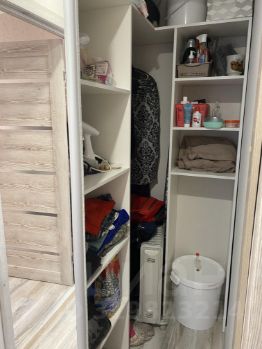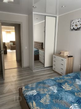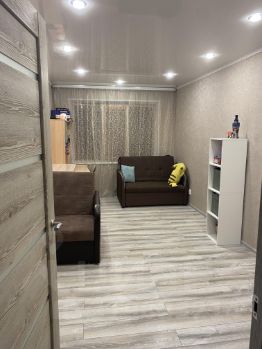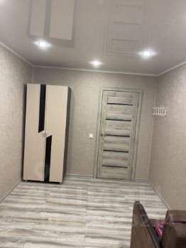 В комнатах везде ламинат, натяжные потолки. В спальне остаётся встроенный шкаф купе .