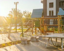 Проект включает шесть домов и многоуровневый паркинг. На первых этажах открываются кафе, магазины и полезные сервисы. А в уютных дворах-парках есть детские и спортивные площадки.