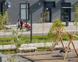 Проект включает шесть домов и многоуровневый паркинг. На первых этажах открываются кафе, магазины и полезные сервисы. А в уютных дворах-парках есть детские и спортивные площадки.