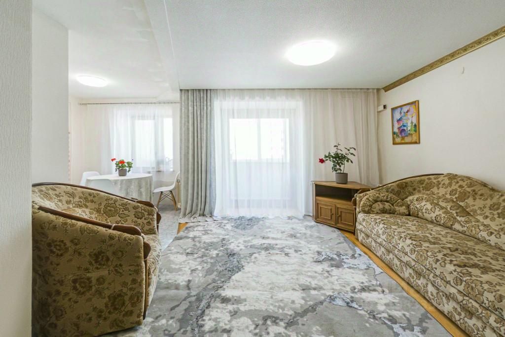 В квартире две остеклённые лоджии с прекрасным видом на центр города — идеальное место для утреннего кофе или вечернего отдыха.