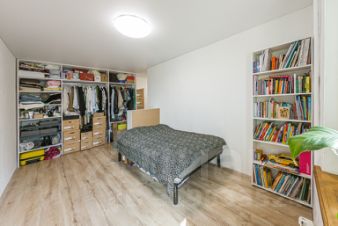 Две отдельные комнаты — с окнами в тихий зелёный двор. В одной из них уже установлен вместительный шкаф.