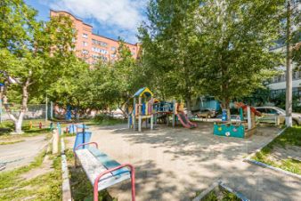 Дом окружён зеленью. Во дворе — детская площадка и парковка только для жителей. Въезд во двор закрыт, что делает его особенно безопасным и тихим.