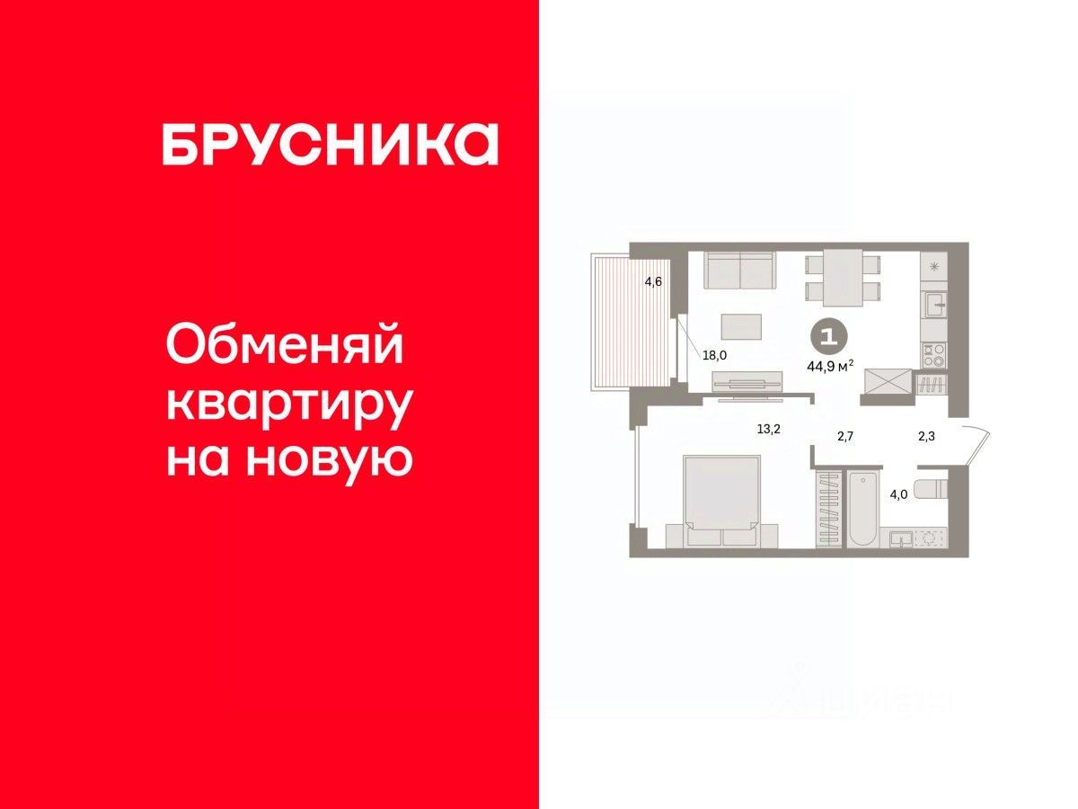 Квартира с кухней-гостиной и одной спальней в квартале "Депо". Особенности планировки: балкон, предчистовая отделка.