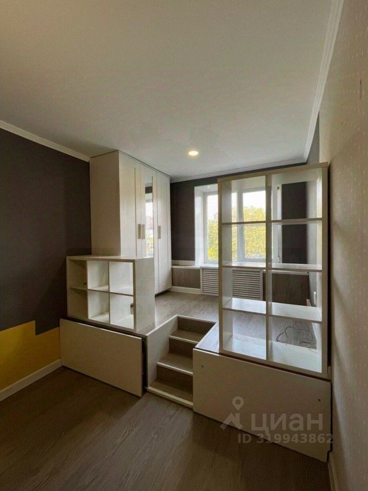 В одной из комнат есть ниша под шкаф. В детской комнате новым жильцам остается выдвижная кровать с матрасом, хороший распашной шкаф, в комнате очень уютно и светло.