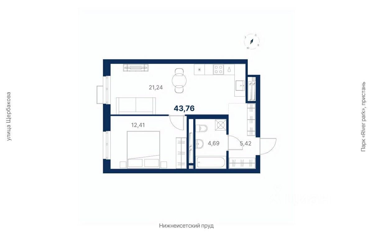 Общая площадь43,76 м²
