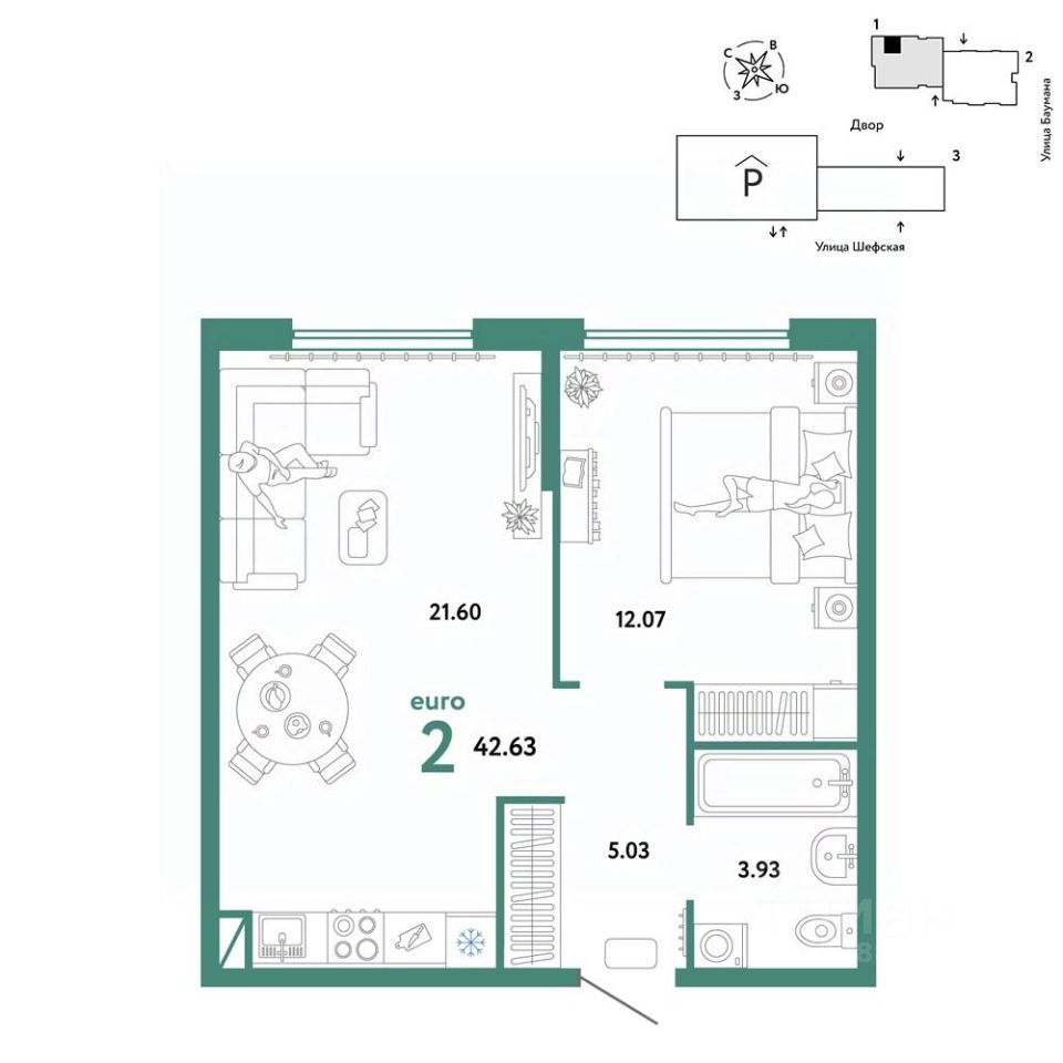 Продается 2комнатная квартира на 14 этаже от застройщика Страна Девелопмент. Площадь квартиры 42,63 кв. м. Стоимость указана без учета акций.