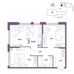 Продается 3комнатная квартира на 14 этаже от застройщика Страна Девелопмент. Площадь квартиры 53,89 кв. м. Стоимость указана без учета акций.