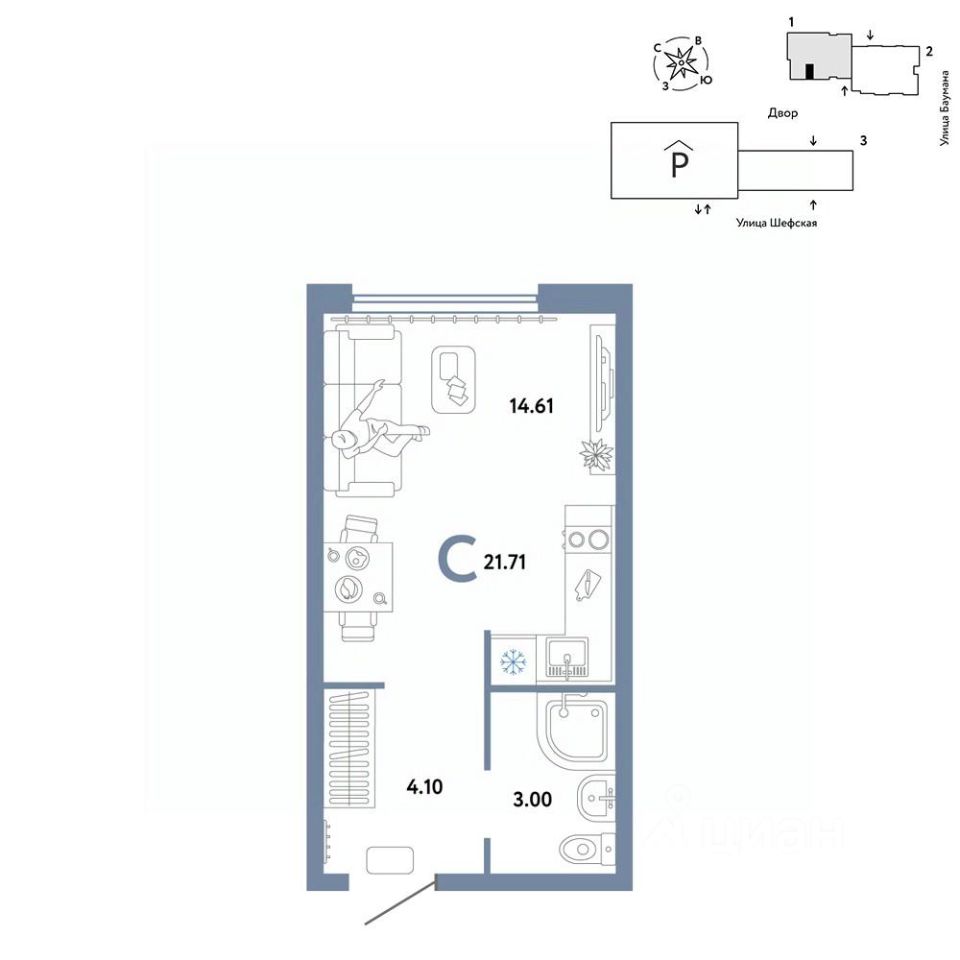 Продается студия на 16 этаже от застройщика Страна Девелопмент. Площадь квартиры 21,71 кв. м. Стоимость указана без учета акций.