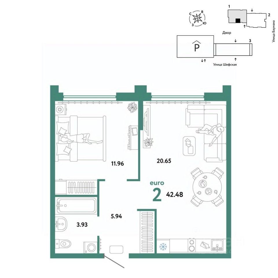 Продается 2комнатная квартира на 20 этаже от застройщика Страна Девелопмент. Площадь квартиры 42,48 кв. м. Стоимость указана без учета акций.