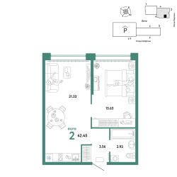 Продается 2комнатная квартира на 6 этаже от застройщика Страна Девелопмент. Площадь квартиры 42,45 кв. м. Стоимость указана без учета акций.