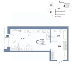 Продается студия на 8 этаже от застройщика Страна Девелопмент. Площадь квартиры 38,27 кв. м. Стоимость указана без учета акций.