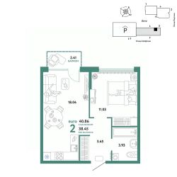 Продается 2комнатная квартира на 12 этаже от застройщика Страна Девелопмент. Площадь квартиры 40,86 кв. м. Стоимость указана без учета акций.
