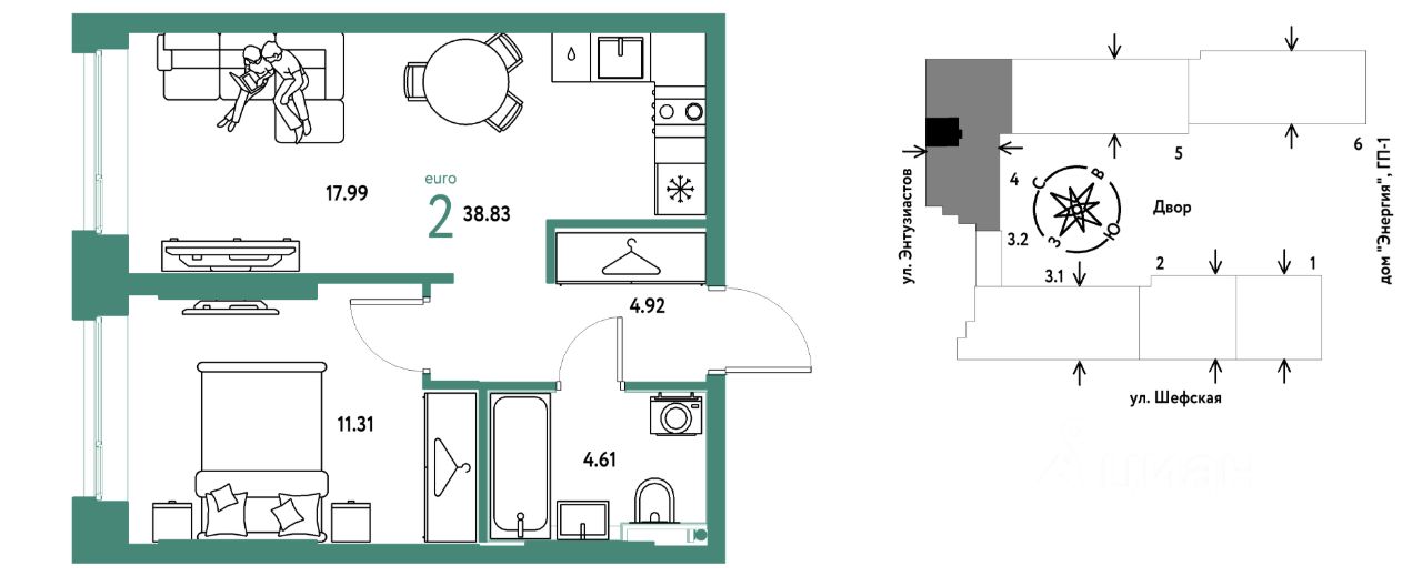 Продаётся 2-комнатная квартира в строящемся доме (Потенциал), срок сдачи: IV-кв. 2027, общей площадью 38.83 кв.м., на 2 этаже. Новый жилой комплекс "Страна.Энтузиастов" от группы компаний "Страна Девелопмент" расположен по адресу: г. Екатеринбург, по ул. Шефская.