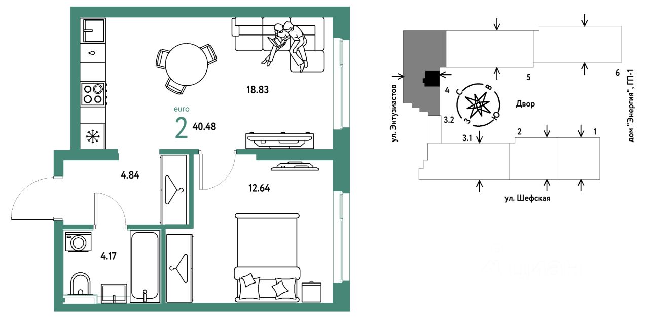 Продаётся 2-комнатная квартира в строящемся доме (Потенциал), срок сдачи: IV-кв. 2027, общей площадью 40.48 кв.м., на 18 этаже. Новый жилой комплекс "Страна.Энтузиастов" от группы компаний "Страна Девелопмент" расположен по адресу: г. Екатеринбург, по ул. Шефская.