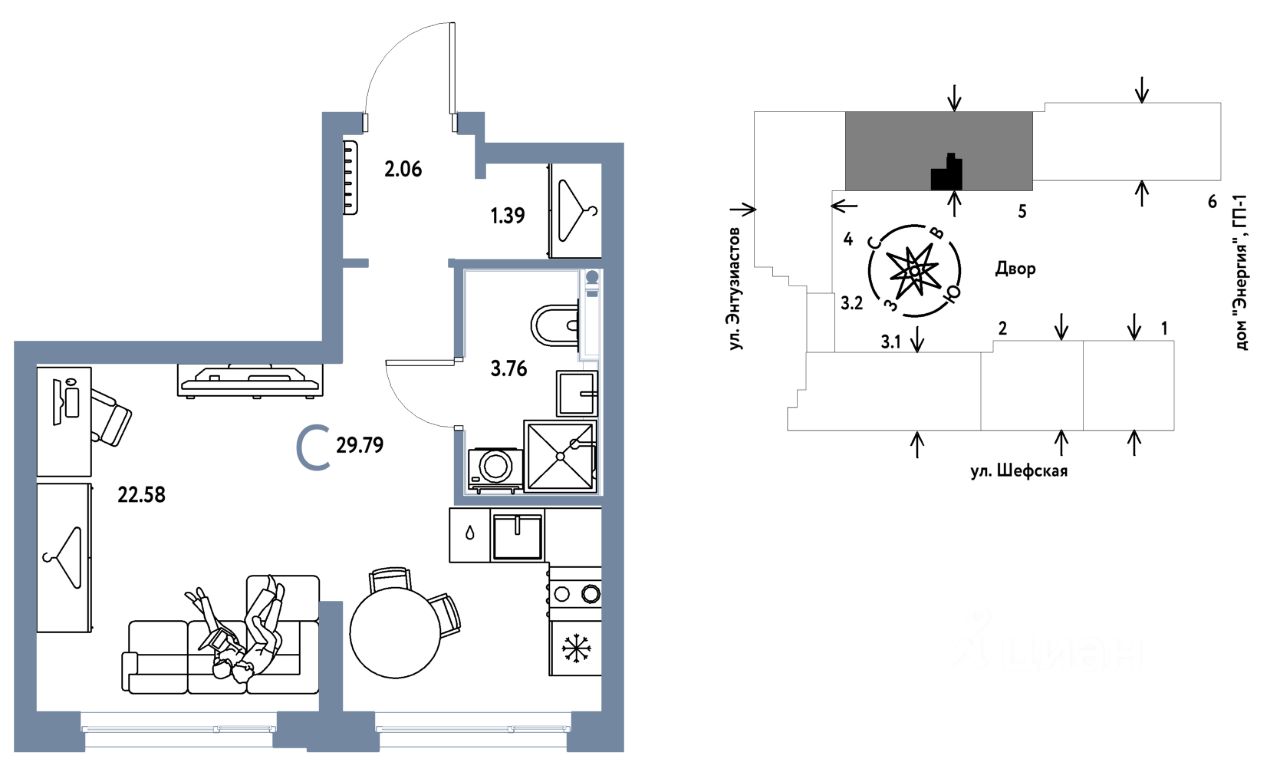 Продаётся студия в строящемся доме (Потенциал), срок сдачи: IV-кв. 2027, общей площадью 29.79 кв.м., на 3 этаже. Новый жилой комплекс "Страна.Энтузиастов" от группы компаний "Страна Девелопмент" расположен по адресу: г. Екатеринбург, по ул. Шефская.