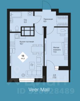 Продается 1-комнатная квартира в ЖК "Веер Парк" от застройщика "Ривьера Инвест"