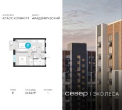 Продаётся квартира площадью 37.33 м2 в жилом комплексе "Эхо леса".