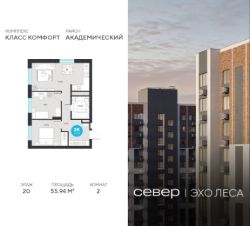Продаётся квартира площадью 55.94 м2 в жилом комплексе "Эхо леса".