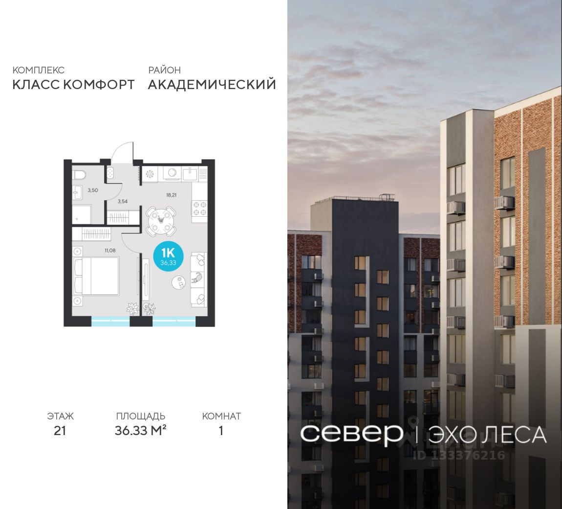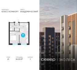 Продаётся квартира площадью 36.33 м2 в жилом комплексе "Эхо леса".