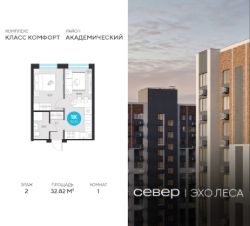 Продаётся квартира площадью 32.82 м2 в жилом комплексе "Эхо леса".