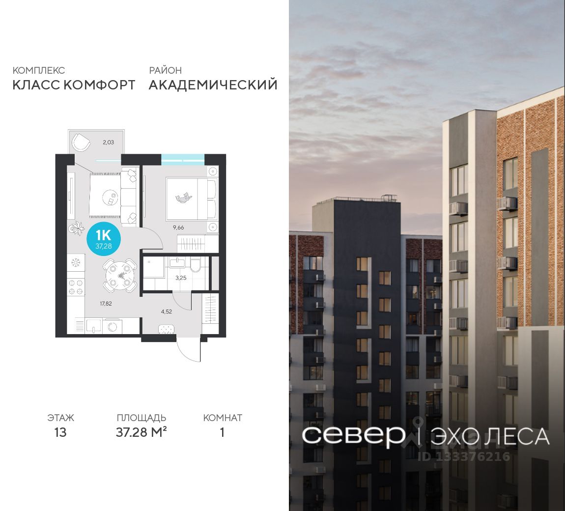 Продаётся квартира площадью 37.28 м2 в жилом комплексе "Эхо леса".