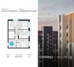 Продаётся квартира площадью 52.93 м2 в жилом комплексе "Эхо леса".