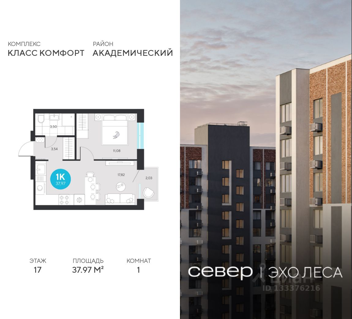 Продаётся квартира площадью 37.97 м2 в жилом комплексе "Эхо леса".