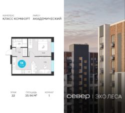 Продаётся квартира площадью 35.94 м2 в жилом комплексе "Эхо леса".