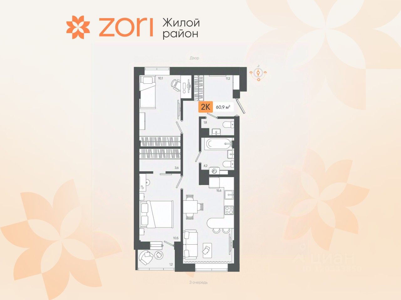 Добро пожаловать в ЖК ZORI — новый жилой район, входящий в Екатеринбургскую агломерацию, расположен в 20 минутах от УРФУ и в 5 минутах от Березовского. Здесь городской комфорт сочетается со спокойствием природы, создавая идеальное пространство для счастливой жизни. Проект реализуется поэтапно: ввод в эксплуатацию первой очереди запланирован на начало 2026 года, а завершение строительства всего проекта намечено на 2027 год. Участок площадью 20 гектаров включает современную инфраструктуру, низкую плотность застройки и просторные дворы. Прилегающий сосновый лес с прогулочными тропами, лыжной трассой (в летнее время — велосипедной дорожкой) делает район идеальным местом для активного отдыха на свежем воздухе. На территории района предусмотрено всё необходимое для комфортной жизни: торговый центр с магазинами, кафе и фитнес-залом, детские образовательные и дошкольные учреждения. На первых этажах домов — продуктовые магазины, аптеки, пекарни и пункты выдачи заказов. Всё это — в шаговой доступности. Первая очередь состоит из 4 домов по 6-8 этажей, окружающих просторный двор площадью 1 Га. Здесь размещены воркаут-комплекс, детские площадки по возрастам, стритбольная площадка, полоса препятствий, многочисленные зоны отдыха и амфитеатр под открытым небом. Парковка наземная, за пределами двора. Передача ключей — I квартал 2026 года. Вторая очередь включает 2 дома по 8 этажей и 3 тематических двора с общим доступом, расположенных на стилобате. Во дворах оборудованы детские площадки по возрастам, зоны отдыха, рабочие пространства на свежем воздухе, спортивные площадки, тихая зона с ленивым ручьем. В подземном паркинге предусмотрены кладовые. Передача ключей — I квартал 2027 года. Третья очередь состоит из 2 домов по 8 этажей с двором на стилобате. Внутри двора расположены детские площадки, зоны для спорта и отдыха, уникальная игровая квартира на свежем воздухе. Также предусмотрен закрытый теплый паркинг с кладовыми. Передача ключей — IV квартал 2026 года. Чувство домашнего комфорта возникает уже в холле: безбарьерная среда, теплые тамбуры, умные домофоны, мягкие зоны ожидания, скоростные лифты. Для удобства жителей предусмотрены колясочные и велосипедные комнаты с доступом по смарт-карте. Квартиры сдаются с отделкой "под чистовую" или с готовым ремонтом от застройщика по проектам "эко-светлый", "эко-темный" и "эко-лайт". Смарт-планировки включают мастер-спальни, гардеробные и теплые лоджии с панорамным остеклением. В каждой квартире установлена система телеметрии для автоматического учёта коммунальных услуг. Комфортный выезд из района предусмотрен как в сторону Березовского, так и в сторону Екатеринбурга, со стороны ЖБИ. Есть выезд на ЕКАД, что позволяет быстро добраться до любой точки города. После сдачи первой очереди начнет курсировать маршрутный автобус до Березовского и до площади Кирова (перед УрФУ). Жилой район ZORI — новый город здоровой и счастливой жизни для вас и вашей семьи!