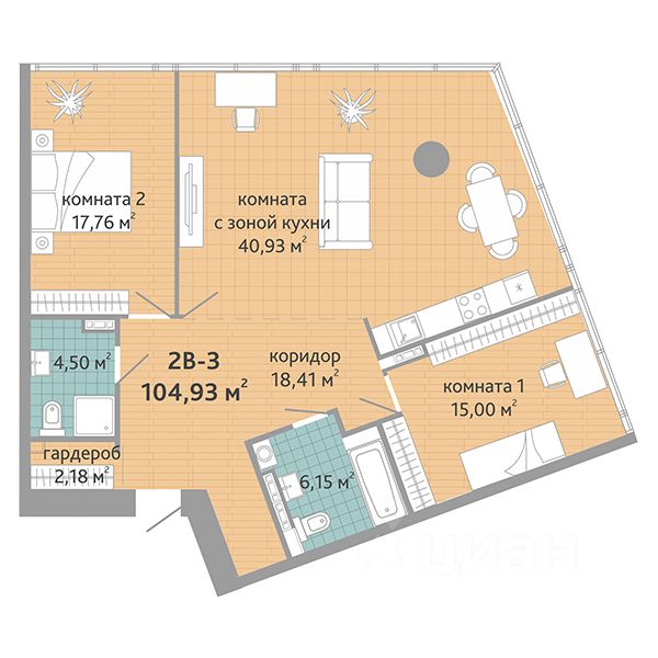 Общая площадь104,93 м²