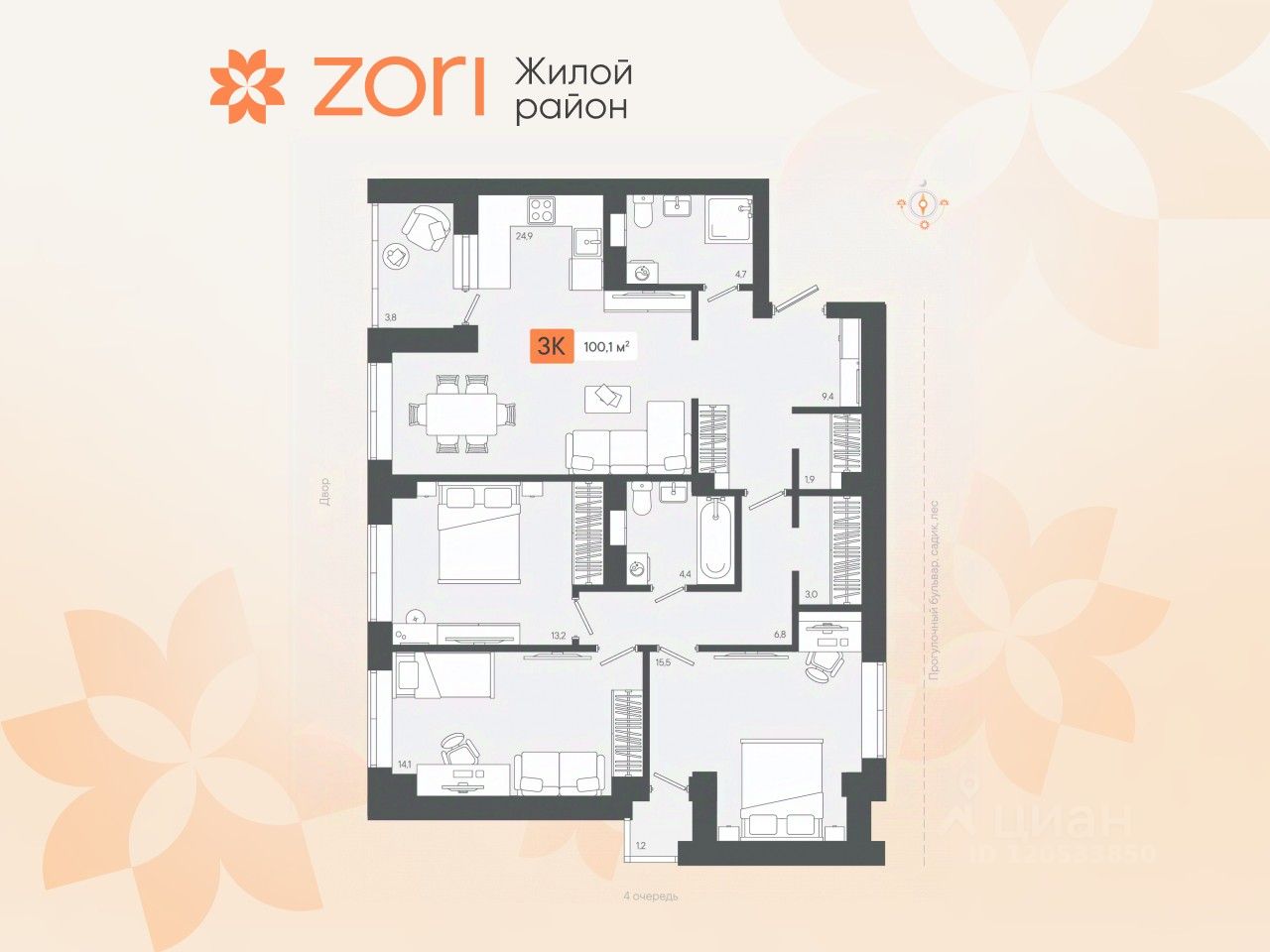 Добро пожаловать в ЖК ZORI — новый жилой район, входящий в Екатеринбургскую агломерацию, расположен в 20 минутах от УРФУ и в 5 минутах от Березовского. Здесь городской комфорт сочетается со спокойствием природы, создавая идеальное пространство для счастливой жизни. Проект реализуется поэтапно: ввод в эксплуатацию первой очереди запланирован на начало 2025 года, а завершение строительства всего проекта намечено на 2027 год. Участок площадью 20 гектаров включает современную инфраструктуру, низкую плотность застройки и просторные дворы. Прилегающий сосновый лес с прогулочными тропами, лыжной трассой (в летнее время — велосипедной дорожкой) делает район идеальным местом для активного отдыха на свежем воздухе. На территории района предусмотрено всё необходимое для комфортной жизни: торговый центр с магазинами, кафе и фитнес-залом, детские образовательные и дошкольные учреждения. На первых этажах домов — продуктовые магазины, аптеки, пекарни и пункты выдачи заказов. Всё это — в шаговой доступности. Первая очередь состоит из 4 домов по 6-8 этажей, окружающих просторный двор площадью 1 Га. Здесь размещены воркаут-комплекс, детские площадки по возрастам, стритбольная площадка, полоса препятствий, многочисленные зоны отдыха и амфитеатр под открытым небом. Парковка наземная, за пределами двора. Передача ключей — IV квартал 2025 года. Вторая очередь включает 2 дома по 8 этажей и 3 тематических двора с общим доступом, расположенных на стилобате. Во дворах оборудованы детские площадки по возрастам, зоны отдыха, рабочие пространства на свежем воздухе, спортивные площадки, тихая зона с ленивым ручьем. В подземном паркинге предусмотрены кладовые. Передача ключей — III квартал 2026 года. Третья очередь состоит из 2 домов по 8 этажей с двором на стилобате. Внутри двора расположены детские площадки, зоны для спорта и отдыха, уникальная игровая квартира на свежем воздухе. Также предусмотрен закрытый теплый паркинг с кладовыми. Передача ключей — II квартал 2026 года. Чувство домашнего комфорта возникает уже в холле: безбарьерная среда, теплые тамбуры, умные домофоны, мягкие зоны ожидания, скоростные лифты. Для удобства жителей предусмотрены колясочные и велосипедные комнаты с доступом по смарт-карте. Квартиры сдаются с отделкой "под чистовую" или с готовым ремонтом от застройщика по проектам "эко-светлый", "эко-темный" и "эко-лайт". Смарт-планировки включают мастер-спальни, гардеробные и теплые лоджии с панорамным остеклением. В каждой квартире установлена система телеметрии для автоматического учёта коммунальных услуг. Комфортный выезд из района предусмотрен как в сторону Березовского, так и в сторону Екатеринбурга, со стороны ЖБИ. Есть выезд на ЕКАД, что позволяет быстро добраться до любой точки города. После сдачи первой очереди начнет курсировать маршрутный автобус до Березовского и до площади Кирова (перед УрФУ). Жилой район ZORI — новый город здоровой и счастливой жизни для вас и вашей семьи!