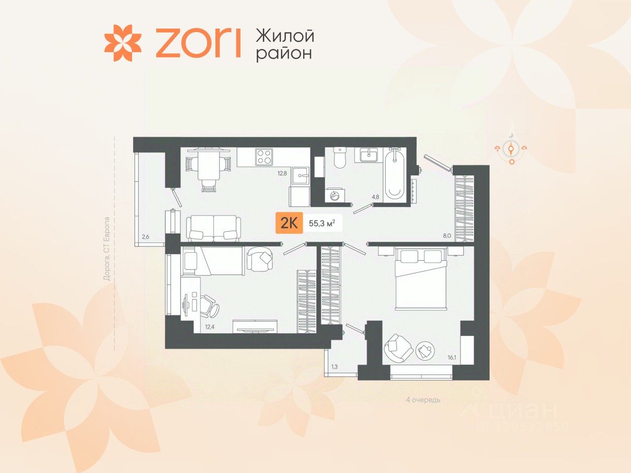 Добро пожаловать в ЖК ZORI — новый жилой район, входящий в Екатеринбургскую агломерацию, расположен в 20 минутах от УРФУ и в 5 минутах от Березовского. Здесь городской комфорт сочетается со спокойствием природы, создавая идеальное пространство для счастливой жизни. Проект реализуется поэтапно: ввод в эксплуатацию первой очереди запланирован на начало 2025 года, а завершение строительства всего проекта намечено на 2027 год. Участок площадью 20 гектаров включает современную инфраструктуру, низкую плотность застройки и просторные дворы. Прилегающий сосновый лес с прогулочными тропами, лыжной трассой (в летнее время — велосипедной дорожкой) делает район идеальным местом для активного отдыха на свежем воздухе. На территории района предусмотрено всё необходимое для комфортной жизни: торговый центр с магазинами, кафе и фитнес-залом, детские образовательные и дошкольные учреждения. На первых этажах домов — продуктовые магазины, аптеки, пекарни и пункты выдачи заказов. Всё это — в шаговой доступности. Первая очередь состоит из 4 домов по 6-8 этажей, окружающих просторный двор площадью 1 Га. Здесь размещены воркаут-комплекс, детские площадки по возрастам, стритбольная площадка, полоса препятствий, многочисленные зоны отдыха и амфитеатр под открытым небом. Парковка наземная, за пределами двора. Передача ключей — IV квартал 2025 года. Вторая очередь включает 2 дома по 8 этажей и 3 тематических двора с общим доступом, расположенных на стилобате. Во дворах оборудованы детские площадки по возрастам, зоны отдыха, рабочие пространства на свежем воздухе, спортивные площадки, тихая зона с ленивым ручьем. В подземном паркинге предусмотрены кладовые. Передача ключей — III квартал 2026 года. Третья очередь состоит из 2 домов по 8 этажей с двором на стилобате. Внутри двора расположены детские площадки, зоны для спорта и отдыха, уникальная игровая квартира на свежем воздухе. Также предусмотрен закрытый теплый паркинг с кладовыми. Передача ключей — II квартал 2026 года. Чувство домашнего комфорта возникает уже в холле: безбарьерная среда, теплые тамбуры, умные домофоны, мягкие зоны ожидания, скоростные лифты. Для удобства жителей предусмотрены колясочные и велосипедные комнаты с доступом по смарт-карте. Квартиры сдаются с отделкой "под чистовую" или с готовым ремонтом от застройщика по проектам "эко-светлый", "эко-темный" и "эко-лайт". Смарт-планировки включают мастер-спальни, гардеробные и теплые лоджии с панорамным остеклением. В каждой квартире установлена система телеметрии для автоматического учёта коммунальных услуг. Комфортный выезд из района предусмотрен как в сторону Березовского, так и в сторону Екатеринбурга, со стороны ЖБИ. Есть выезд на ЕКАД, что позволяет быстро добраться до любой точки города. После сдачи первой очереди начнет курсировать маршрутный автобус до Березовского и до площади Кирова (перед УрФУ). Жилой район ZORI — новый город здоровой и счастливой жизни для вас и вашей семьи!