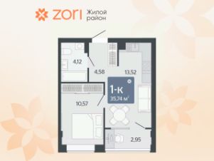 Общая площадь35,74 м²