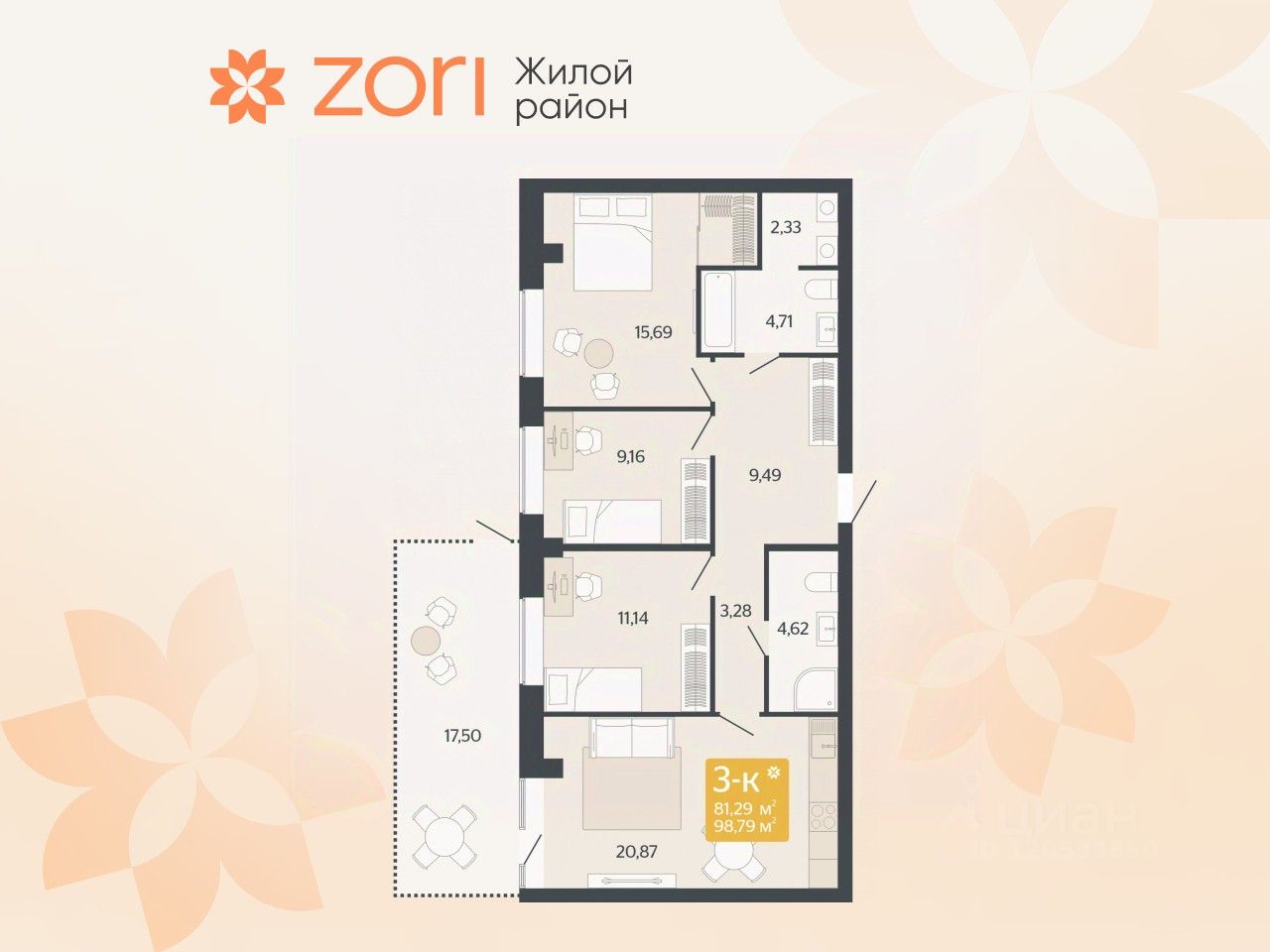 Добро пожаловать в ЖК ZORI — новый жилой район, входящий в Екатеринбургскую агломерацию, расположен в 20 минутах от УРФУ и в 5 минутах от Березовского. Здесь городской комфорт сочетается со спокойствием природы, создавая идеальное пространство для счастливой жизни. Проект реализуется поэтапно: ввод в эксплуатацию первой очереди запланирован на начало 2026 года, а завершение строительства всего проекта намечено на 2027 год. Участок площадью 20 гектаров включает современную инфраструктуру, низкую плотность застройки и просторные дворы. Прилегающий сосновый лес с прогулочными тропами, лыжной трассой (в летнее время — велосипедной дорожкой) делает район идеальным местом для активного отдыха на свежем воздухе. На территории района предусмотрено всё необходимое для комфортной жизни: торговый центр с магазинами, кафе и фитнес-залом, детские образовательные и дошкольные учреждения. На первых этажах домов — продуктовые магазины, аптеки, пекарни и пункты выдачи заказов. Всё это — в шаговой доступности. Первая очередь состоит из 4 домов по 6-8 этажей, окружающих просторный двор площадью 1 Га. Здесь размещены воркаут-комплекс, детские площадки по возрастам, стритбольная площадка, полоса препятствий, многочисленные зоны отдыха и амфитеатр под открытым небом. Парковка наземная, за пределами двора. Передача ключей — I квартал 2026 года. Вторая очередь включает 2 дома по 8 этажей и 3 тематических двора с общим доступом, расположенных на стилобате. Во дворах оборудованы детские площадки по возрастам, зоны отдыха, рабочие пространства на свежем воздухе, спортивные площадки, тихая зона с ленивым ручьем. В подземном паркинге предусмотрены кладовые. Передача ключей — I квартал 2027 года. Третья очередь состоит из 2 домов по 8 этажей с двором на стилобате. Внутри двора расположены детские площадки, зоны для спорта и отдыха, уникальная игровая квартира на свежем воздухе. Также предусмотрен закрытый теплый паркинг с кладовыми. Передача ключей — IV квартал 2026 года. Чувство домашнего комфорта возникает уже в холле: безбарьерная среда, теплые тамбуры, умные домофоны, мягкие зоны ожидания, скоростные лифты. Для удобства жителей предусмотрены колясочные и велосипедные комнаты с доступом по смарт-карте. Квартиры сдаются с отделкой "под чистовую" или с готовым ремонтом от застройщика по проектам "эко-светлый", "эко-темный" и "эко-лайт". Смарт-планировки включают мастер-спальни, гардеробные и теплые лоджии с панорамным остеклением. В каждой квартире установлена система телеметрии для автоматического учёта коммунальных услуг. Комфортный выезд из района предусмотрен как в сторону Березовского, так и в сторону Екатеринбурга, со стороны ЖБИ. Есть выезд на ЕКАД, что позволяет быстро добраться до любой точки города. После сдачи первой очереди начнет курсировать маршрутный автобус до Березовского и до площади Кирова (перед УрФУ). Жилой район ZORI — новый город здоровой и счастливой жизни для вас и вашей семьи!